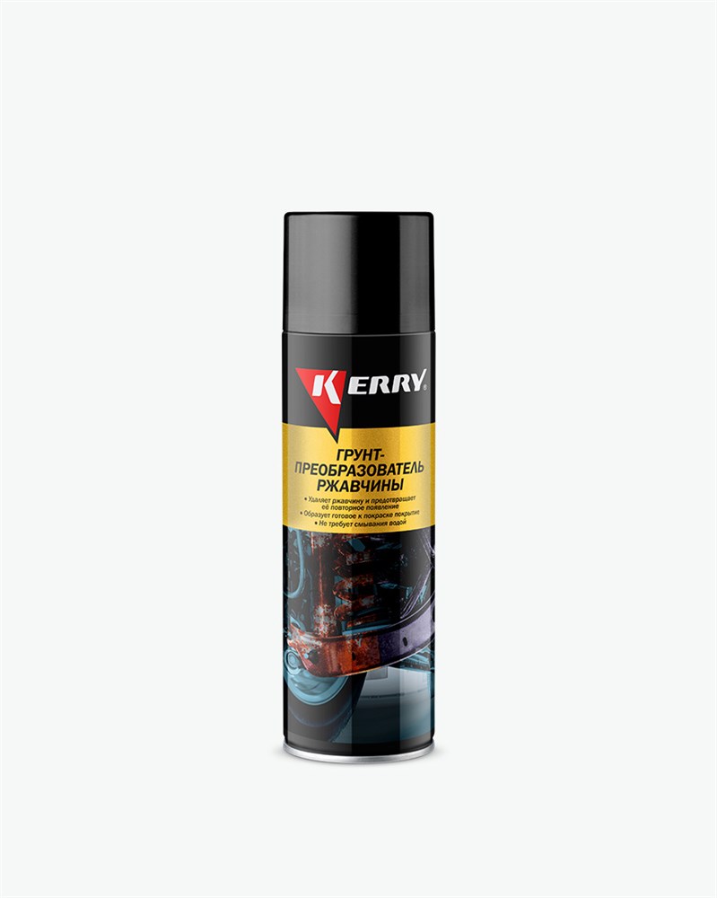 Кислотный преобразователь ржавчины в грунт KERRY KR-973 в аэрозольном баллоне. Применяется для подготовки к покраске поражённых ржавчиной металлических поверхностей. Эффективно преобразовывает ржавчину и сохраняет поверхность от повторного появления коррозии. Образует готовое к окраске покрытие, стойкое к воздействию влаги и растворителей.